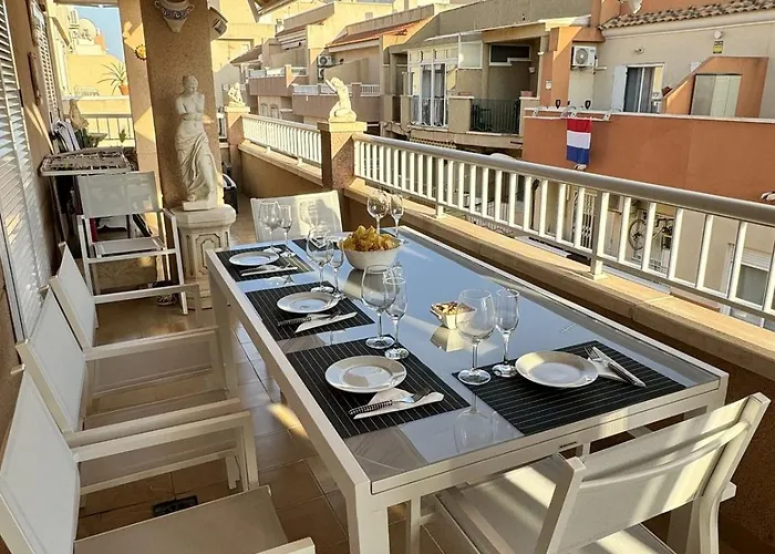 Pour profiter de vos vacances à Torrevieja, séjournez à Apartamento La Ola Torrevieja de 83 m², qui se trouve à 3 km du Parc aquatique Flamingo et à 20 minutes à pied de la Tour Torre del Moro. La résidence offre une vue sur la ville, et il y a une terrasse.